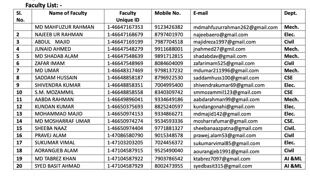 Faculty Details